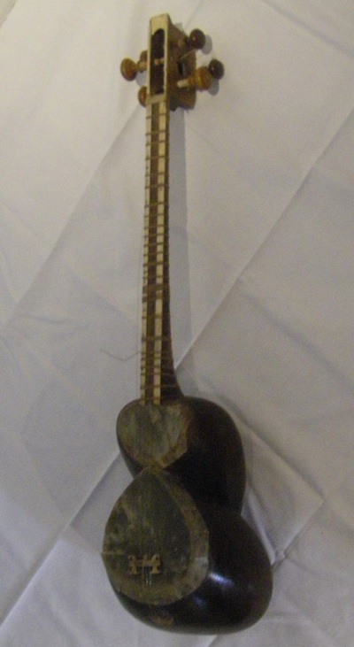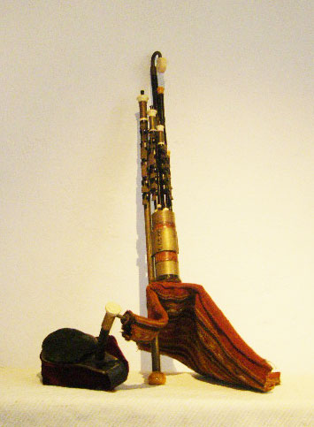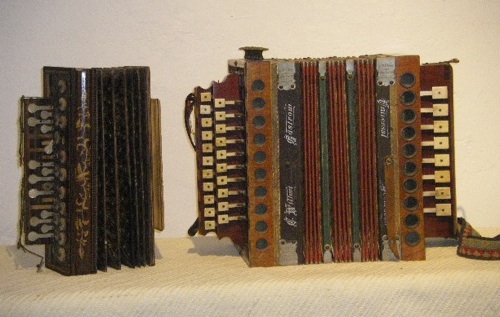 Ausgestellt sind erstens eine Schnurrassel aus Brasilien. Zwei Reihen von Fruchtkapseln sind auf einer geflochtenen Hanfschnur befestigt. – Weiterhin eine Aufschlagrute aus Deutschland, einem besenartig ausgeschnittenen Holzblock der in einen Griff ausläuft, – sowie eine auch aus Deutschland stammende Klapper. Bei ihr schlagen beim Schütteln zwei Bretter, die mit Lederstreifen und Schrauben befestigt sind, auf ein feststehendes Mittelbrett. Der Griff ist gedrechselt.