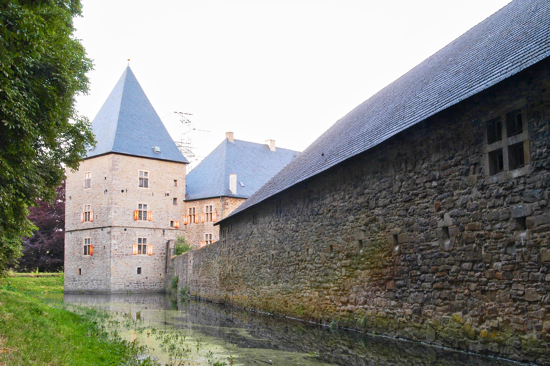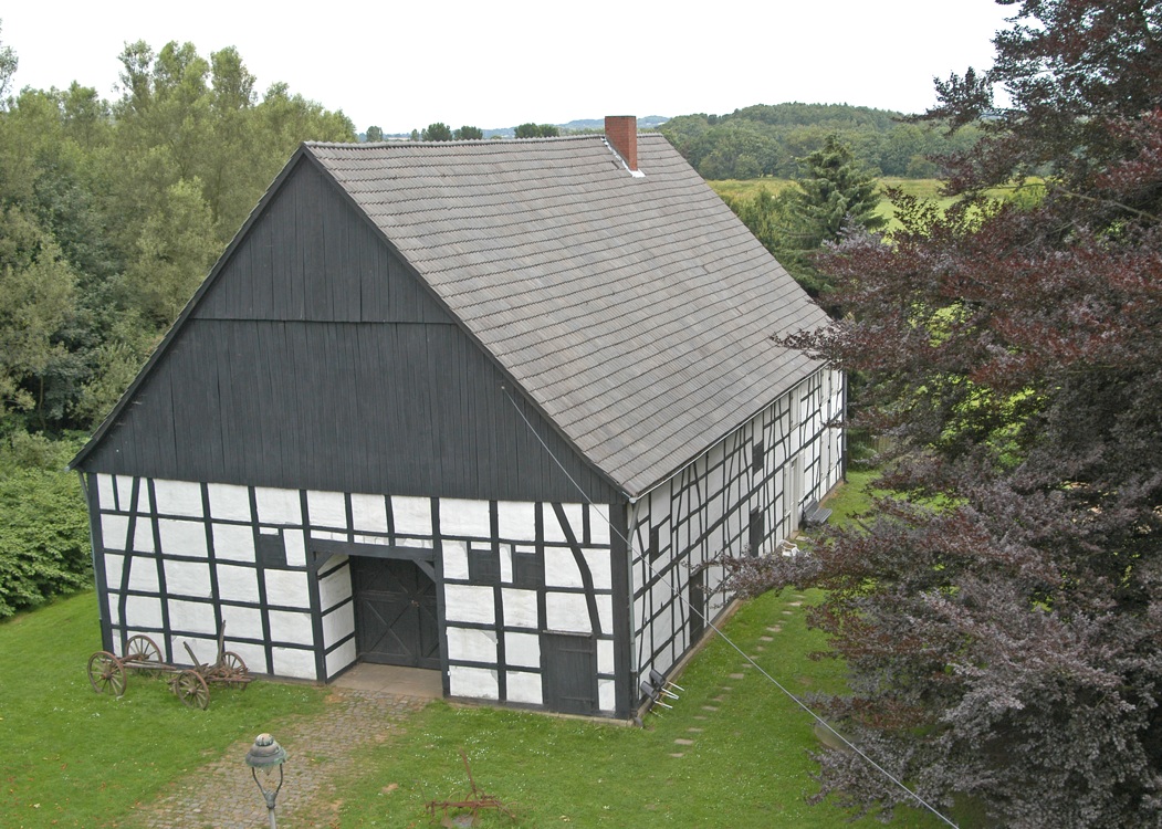 Zu dieser Zeit lag das Haus noch auf derselben Seite wie der Hof, erst durch ein Verlagerung der Ruhr 1486 geriet es auf die andere Ruhrseite. Das Haupthaus war vierseitig von einer Gräfte umgeben, davor dürften Wirtschaftsgebäude gelegen haben. Die heutigen Gebäude auf diesem Gelände sind zwischen 1780 und 1969 entstanden. 1589 brannte das Haupthaus ab, der Neubau zog sich von 1602 bis 1704 hin. In dieser Gestalt ist das Haus bis heute erhalten geblieben. Im fehdereichen 15. Jahrhundert könnte das Haus auch Verteidigungsfunktion gehabt haben, der Neubau hatte diese Funktion aber trotz des mächtigen Eckturms nicht mehr. - Der älteste erhalten gebliebene Teil des Hauses ist die Kapelle vom Anfang des 16. Jahrhunderts.